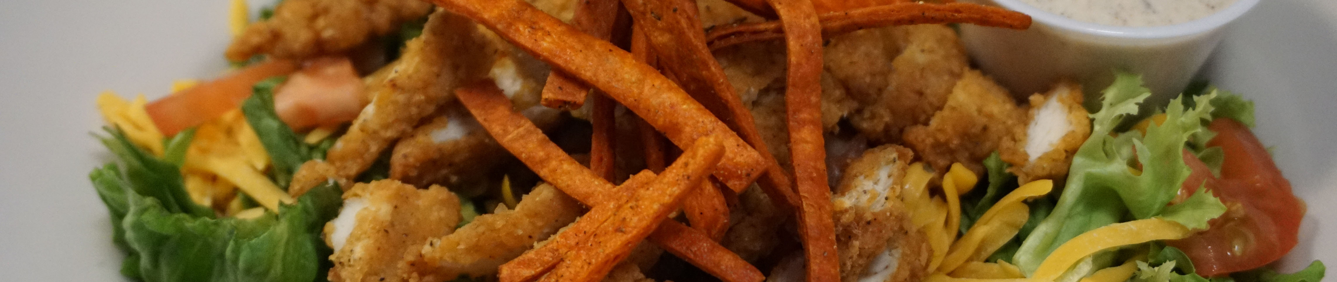 - Garden Salad$$$ Fresh green leaf lettuce mixed with tomatoes, shredded cheddar, cucumbers, cabbage and banana peppers. Add Crispy or Grilled Chicken, Tuna Salad, Fresh Angus Patty or Veggie Patty for 2.00